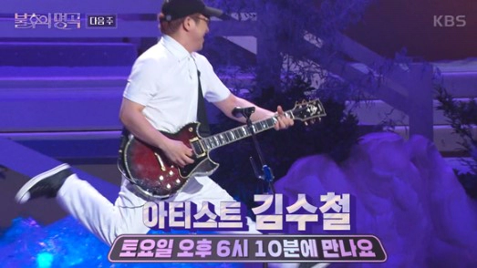 2일 KBS 2TV '불후의 명곡'에서는 김수철 특집으로 김수철의 노래를 다양한 아티스트들이 불렀습니다. 뮤지션은 크라잉넛 조장혁, 양동근&팝핀현준, 몽니&오은철, '프리다' 팀, 나상현씨밴드, 안예은, 김기태, 라포엠, 싸이커스 등이 출연했습니다.