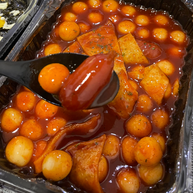 그 다음은 아주 매콤한 떡볶이 인데 떡 종류를 이렇게 동글동글한 떡으로 선택했다. 그 결과는 아주 대만족 떡이 길지 않아서 한입에 먹기가 아주 편했다. 그리고 국물이 맹맹하지 않고 간간하고 달콤하고 매콤하니 아주 입맛이 뒤지게 돌정도로 맛있었다.