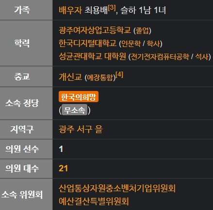 양향자 국회의원 프로필 나이 학력 논란